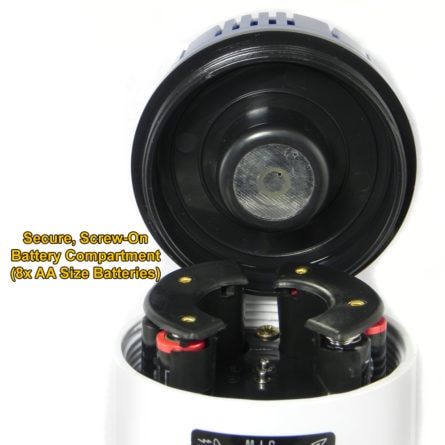 COMPACT DESIGN: This compact & portable PA speaker features a 8” diameter bell and 12” chassis that is constructed from industrial grade plastic that delivers a 90-degree sound projection angle for direct sound aiming. It weights just 2.5 lbs. with batteries, and can deliver up to 8 hours of continuous charging power.